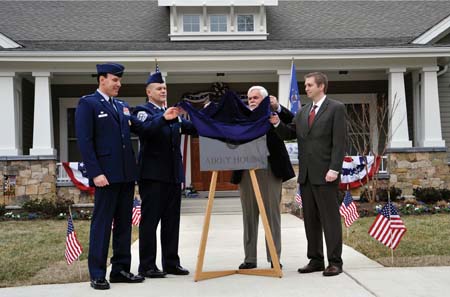Airmen past and present, including five former Chief Master Sergeants of the Air Force, gathered at JB Andrews, Md., on March 10 to dedicate the street and new house where the current CMSAF resides in honor of Paul Airey, first CMSAF, who died March 11, 2009. “It’s fitting that we dedicate this beautiful home to Chief Airey,” said Lt. Gen. William Shelton, assistant vice chief of staff. He added, “He was a pioneer, a tireless champion of our Air Force.” The residence, now called Airey House, contains items from former CMSAFs that now serve as historical artifacts. CMSAF James Roy said: “From this day forward, when airmen come to these quarters, they will see a snapshot of our enlisted heritage and one of our greatest enlisted leaders.” Airey’s son, retired CMSgt. Dale Airey, thanked everyone on behalf of the Airey family. (Andrews report by Chelsea Gitzen)
