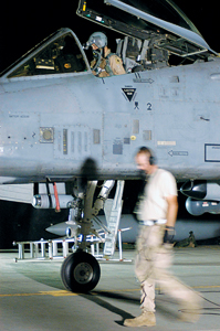 Rick Mitchell of the 442nd Fighter Wing, an Air Force Reserve unit from Whiteman AFB, Mo., prepares for a nighttime sortie over Afghanistan. |