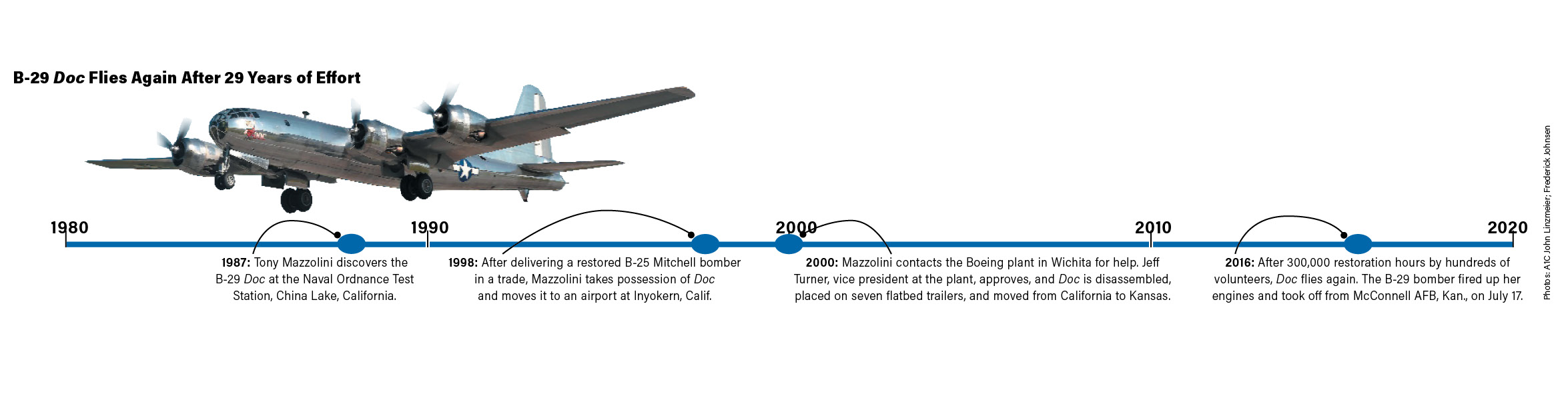 Doc and FIFI were refurbished in different locations and different decades with different sponsors. What made both of these B-29 resurrections possible was the tenacity of a patron and steward with the vision to look beyond sandblown B-29 hulks in the Mojave Desert and into the future.