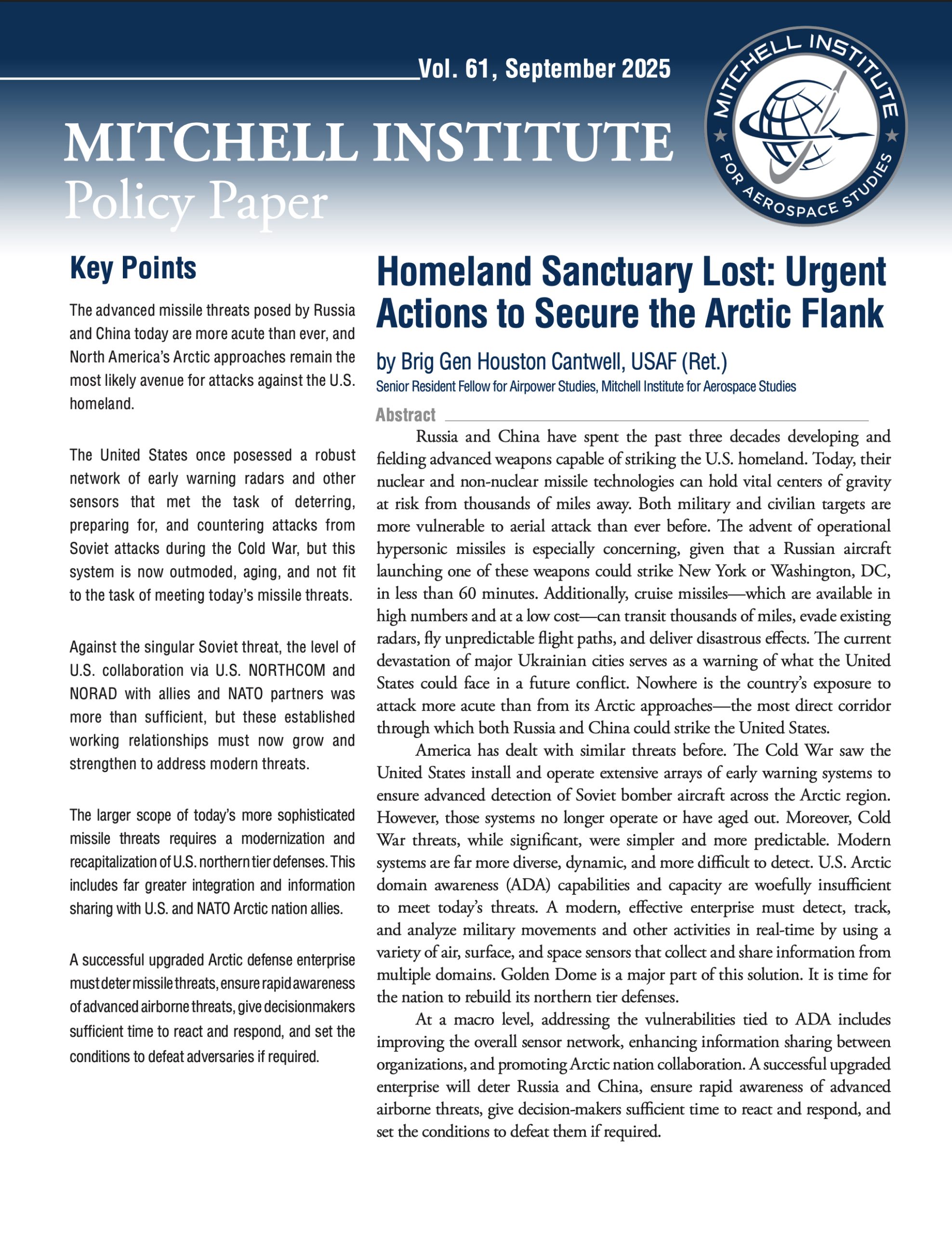 Nowhere is America’s exposure to attack more acute than from its Arctic approaches—the most direct corridor through which both Russia and China could strike the United States. Alaska, America’s Arctic outpost, has long been seen as a key strategic site. “I believe that in the future, whoever holds Alaska will hold the world,” airpower pioneer Gen. Billy Mitchell told Congress in 1935. “I think it is the most important strategic place in the world.” Ninety years later, at his confirmation hearing in October, incoming Air Force Chief of Staff Gen. Kenneth Wilsbach was asked if he agreed. “I do believe,” he said, “that it is the most strategic spot on Earth.” The Cold War saw the United States develop and operate extensive early warning systems to ensure the military could detect Soviet bomber aircraft far across the Arctic region. Those systems aged out, however, and are no longer operable. More important, today’s threats are more varied, harder to detect, and less predictable than the weapons of the Cold War era. Today’s Arctic domain awareness (ADA) capabilities and capacity are woefully insufficient to the threat.