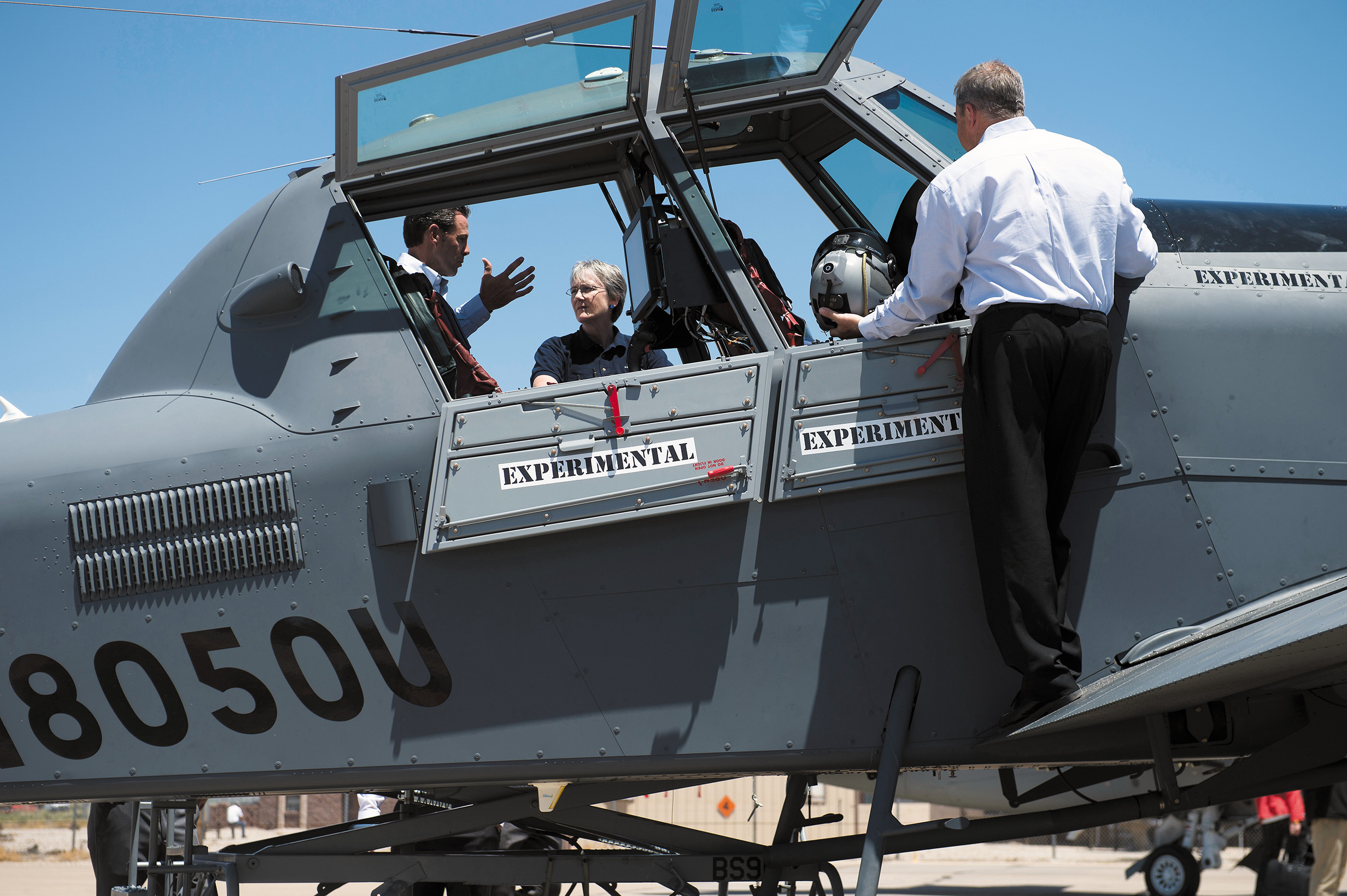 During an open house in August before an audience of scores of senior Air Force officials, industry representatives, and media, Goldfein made a memorable entrance by flying in the AT-6B himself, landing, and then taxiing up to the bleachers before speeches from Holloman leaders.