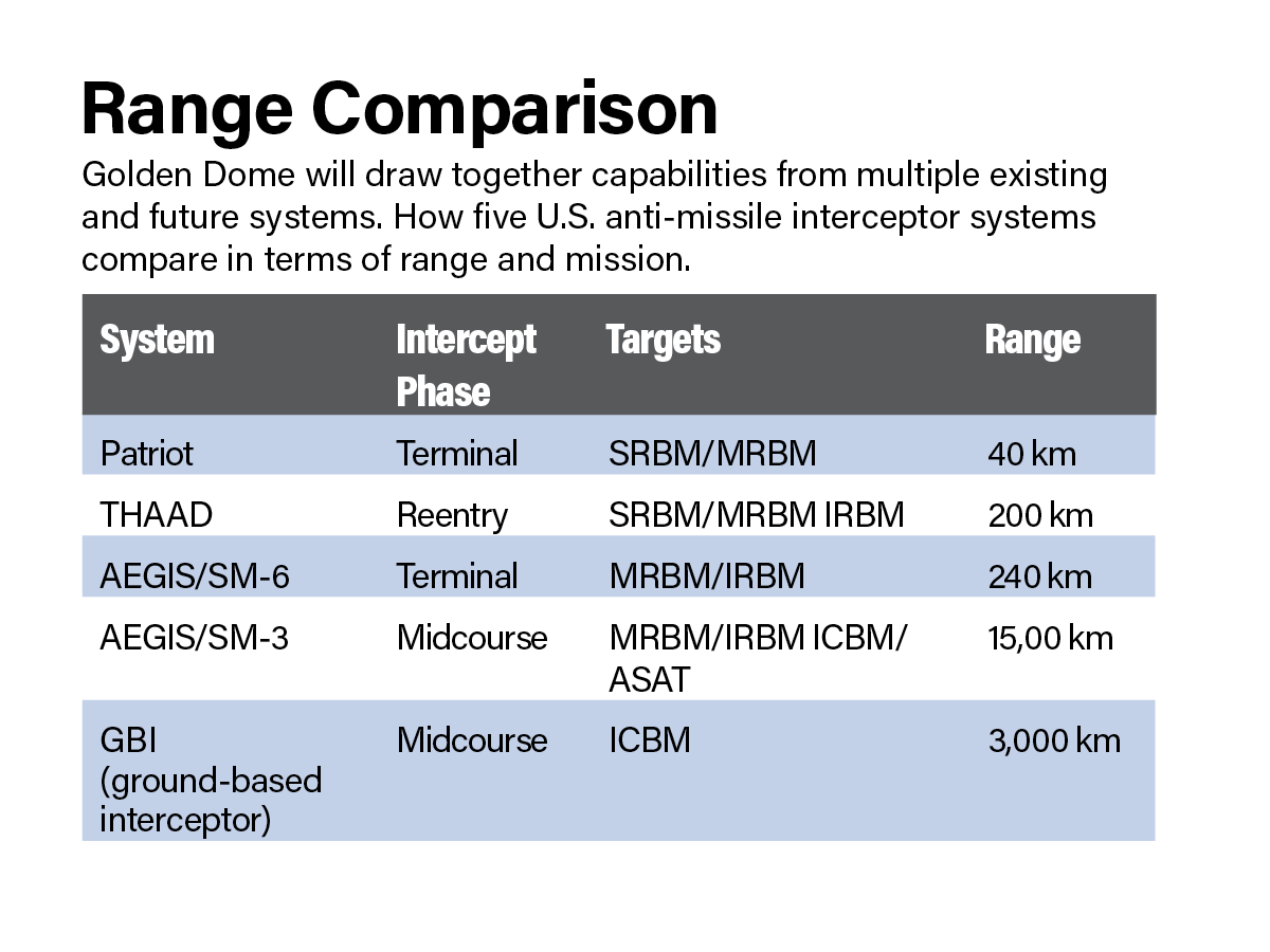 To defend against the full range of threats, the Golden Dome system will have to be capable of handling different missile types and phases of flight.