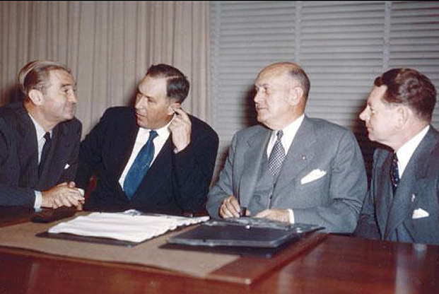 Rep. Carl Vinson (D-Ga.), (left), Secretary of the Navy Francis Matthews, Adm. Louis Denfeld, and Pacific Fleet Commander Arthur Radford in Washington, D.C., on Oct. 6, 1949. Photo: US Naval Institute