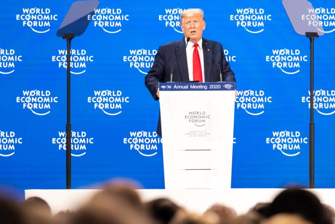 U.S. President Donald Trump at the Davos World Economic Forum in response statements made by Canadian Prime Minister Mark Carney.