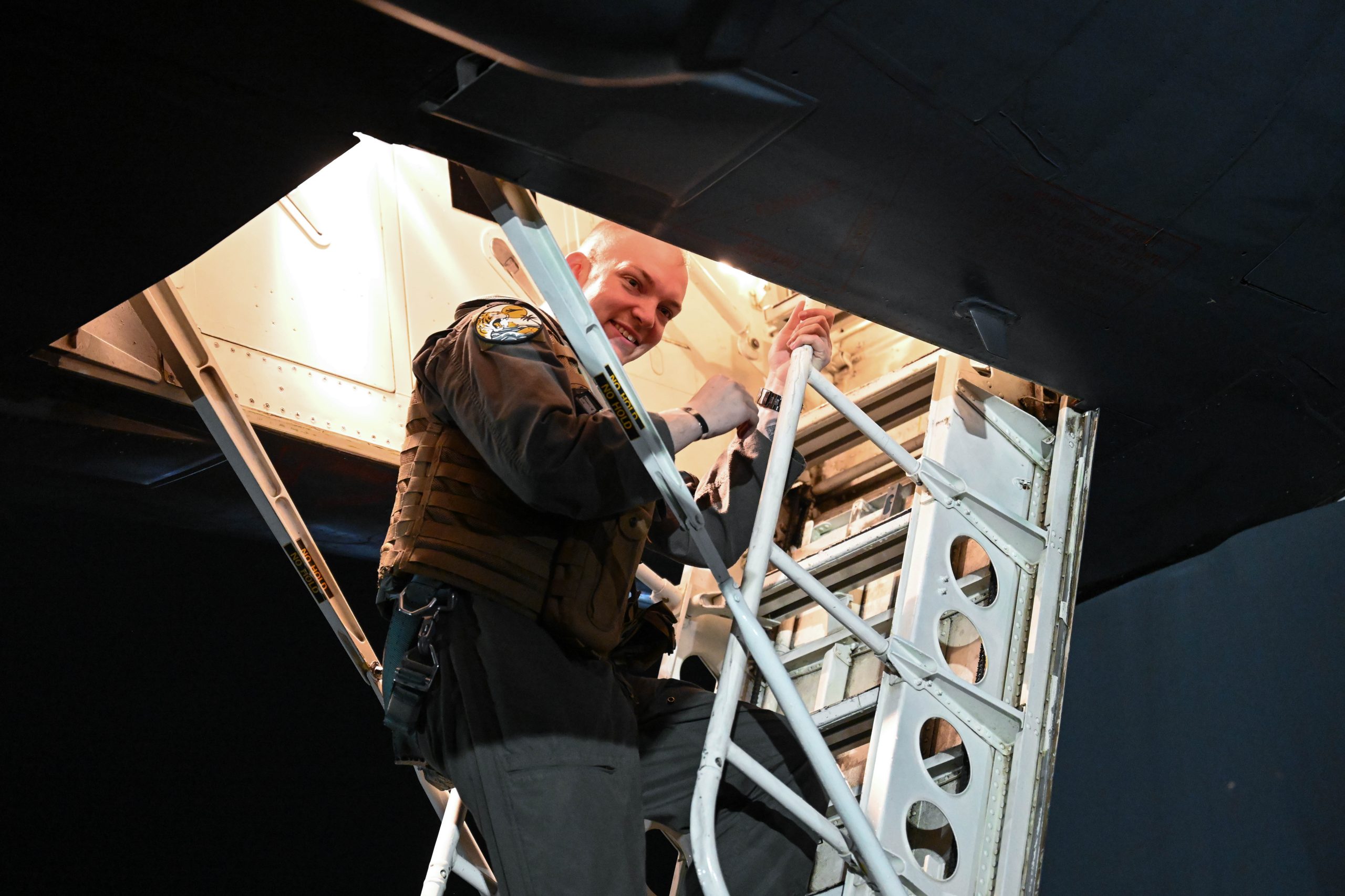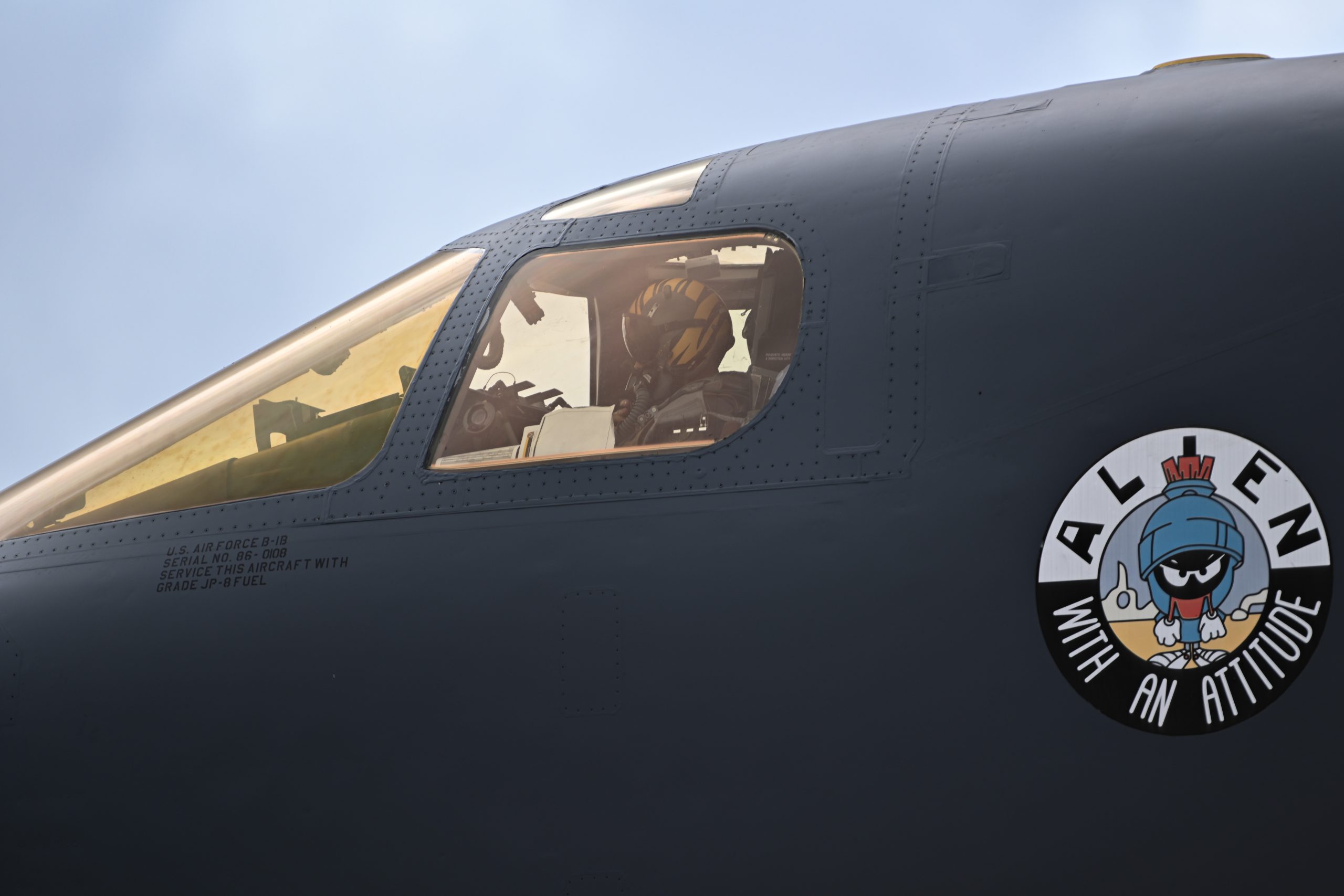 A U.S. Air Force pilot from the 37th Expeditionary Bomb Squadron exits a U.S. Air Force B-1B Lancer at Andersen Air Force Base, Guam, May 23, 2024, in support of a Bomber Task Force mission. BTF missions enable crews to maintain a high state of readiness and proficiency and validate our always-ready global strike capability. The U.S. routinely and visibly demonstrates commitment to our allies and partners through the global employment of our military forces. (U.S. Air Force photo by Airman 1st Class Dylan Maher)