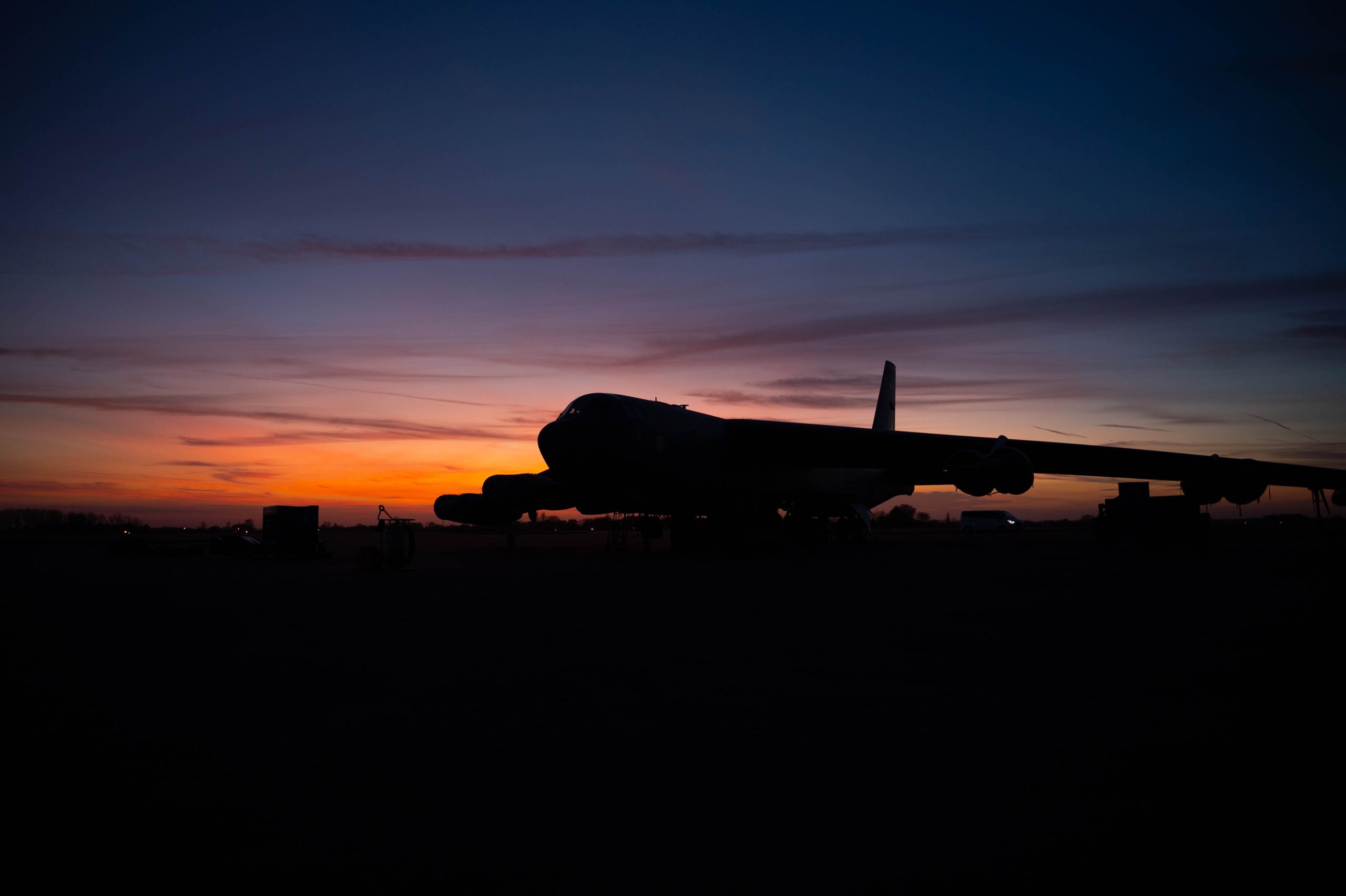 A B-52H Stratofortress sits on the flightline at RAF Fairford, England, Nov. 13, 2024. The B-52H Stratofortress will be employed during Bomber Task Force 25-1 as aircrews integrate with NATO Allies to reinforce the strength and commitment of the Alliance. (U.S. Air Force photo by Senior Airman Mary Bowers)