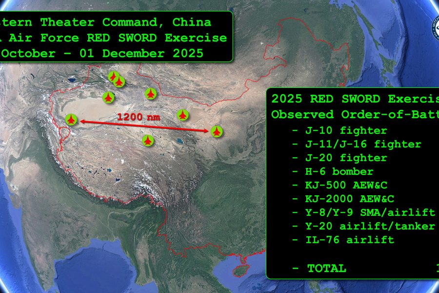 AURORA, Colo.—Analysis of commercial satellite imagery indicates China held a major five-week air exercise encompassing eight bases and some 200 aircraft, across a 1,200-nautical mile swath of the country in late 2025.