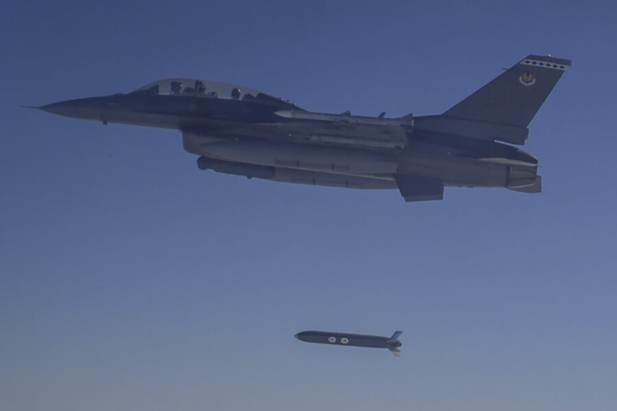 The Air Force ERAM is “a next-generation … precision-guided, stand-off” weapon, the Air Force said in a release reporting the test, which included functionality checks, validated load procedures, and proved the weapon is compatible with the F-16.