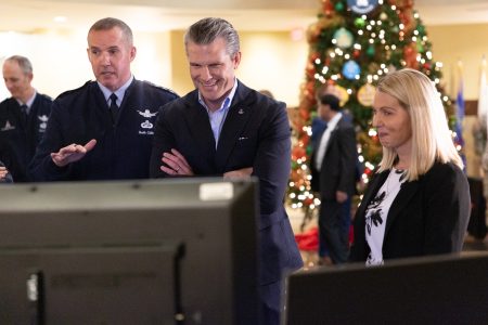 “Now we are off to the races to get it done,” said Secretary of the Air Force Troy Meink, who delivered remarks at the ceremony along with the head of Space Command Gen. Stephen N. Whiting. Underscoring the political stakes, Alabama’s congressional delegation also attended and spoke at the ceremony, and Hegseth highlighted their efforts to move the command to Huntsville.