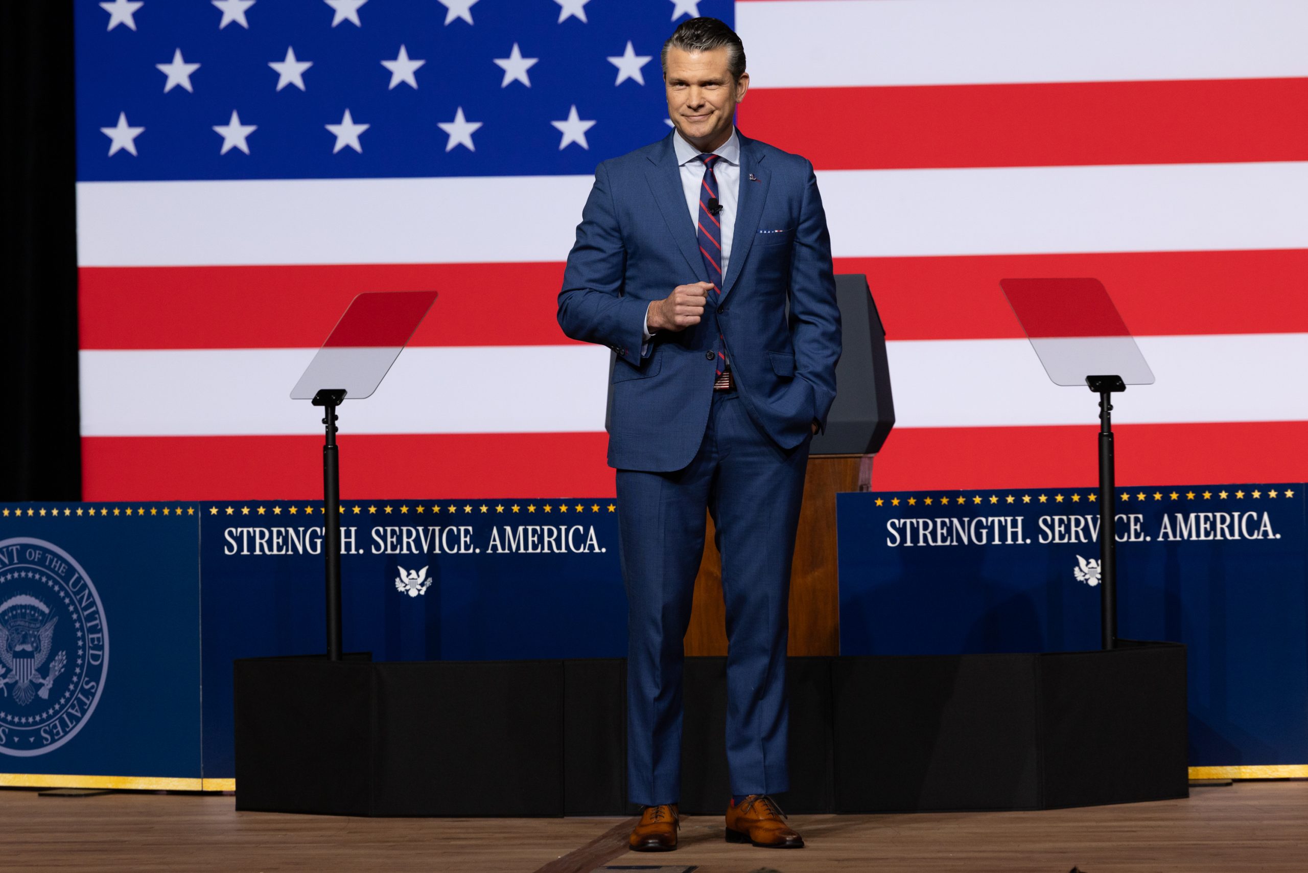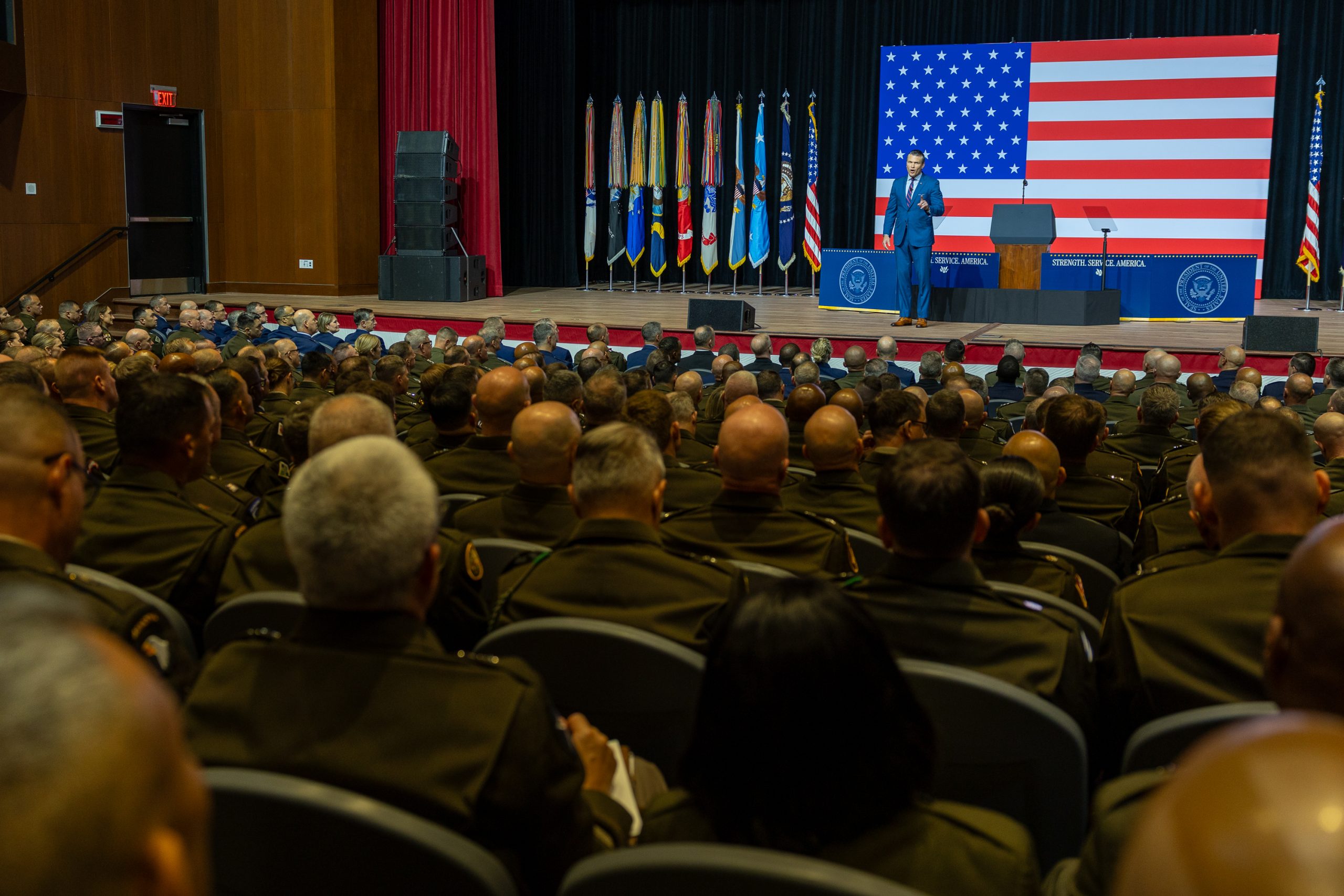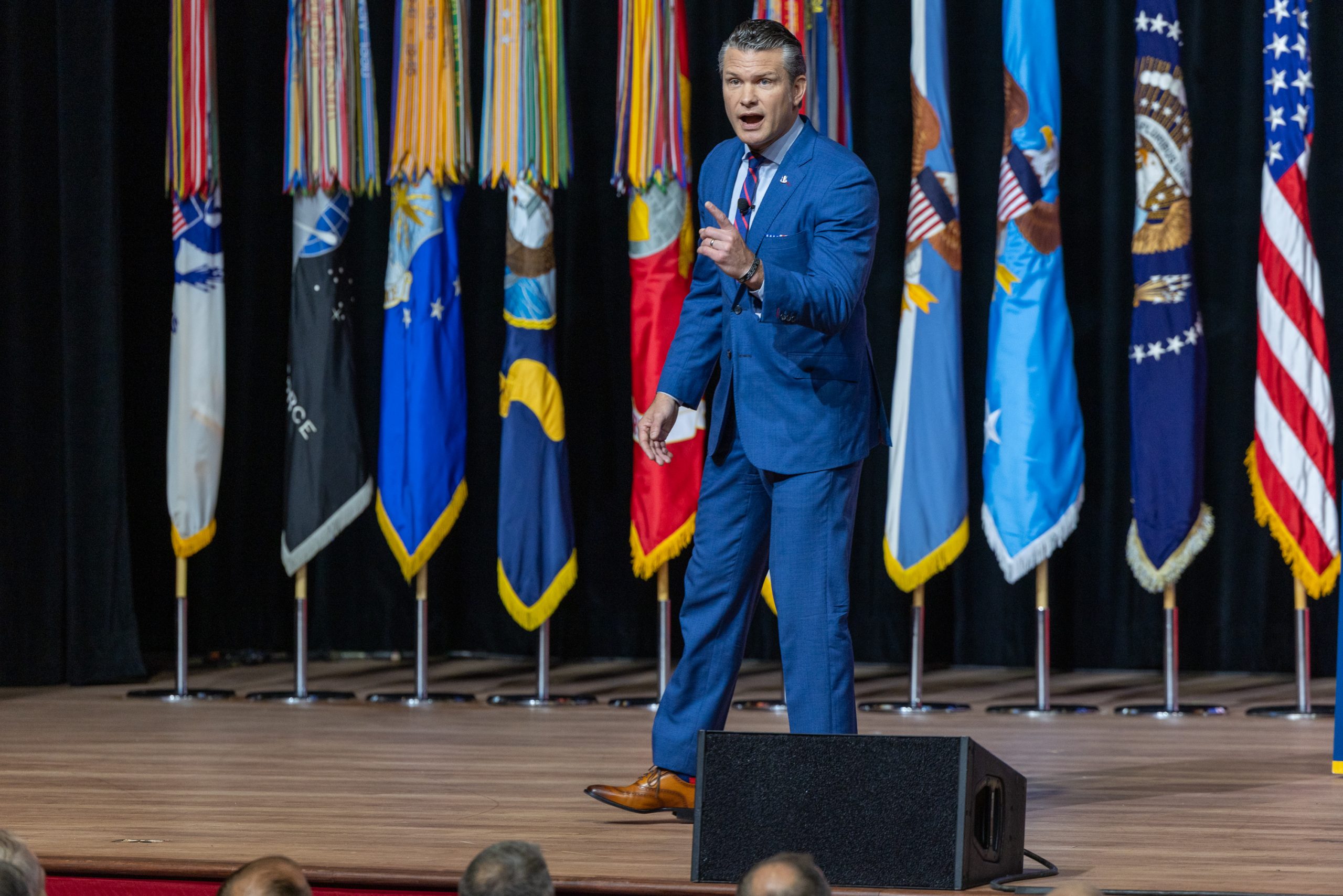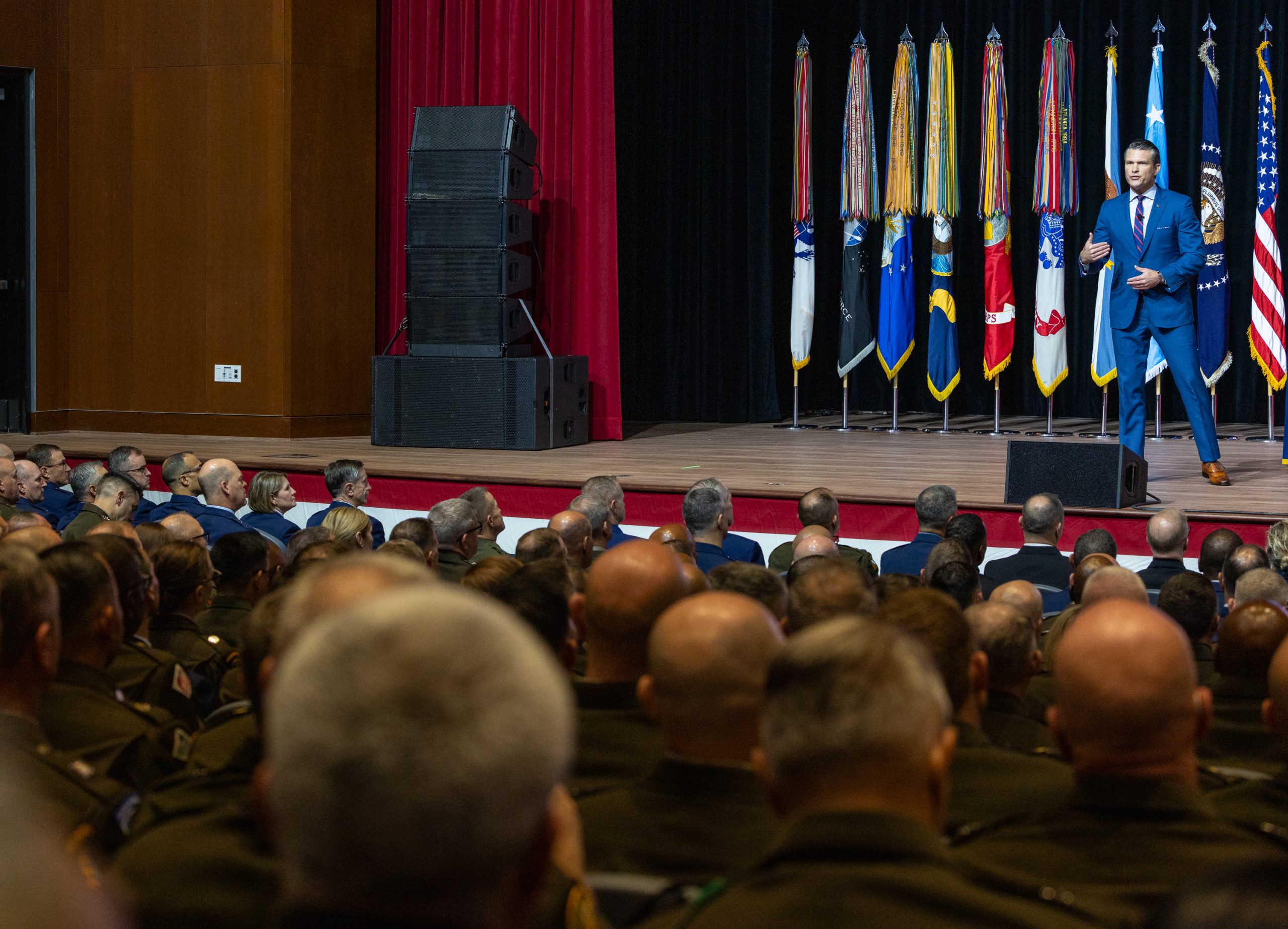 Behind the service chiefs sat leaders of the combatant commands. Each service had its own section, and the services’ songs played on loops before Hegseth’s arrival.