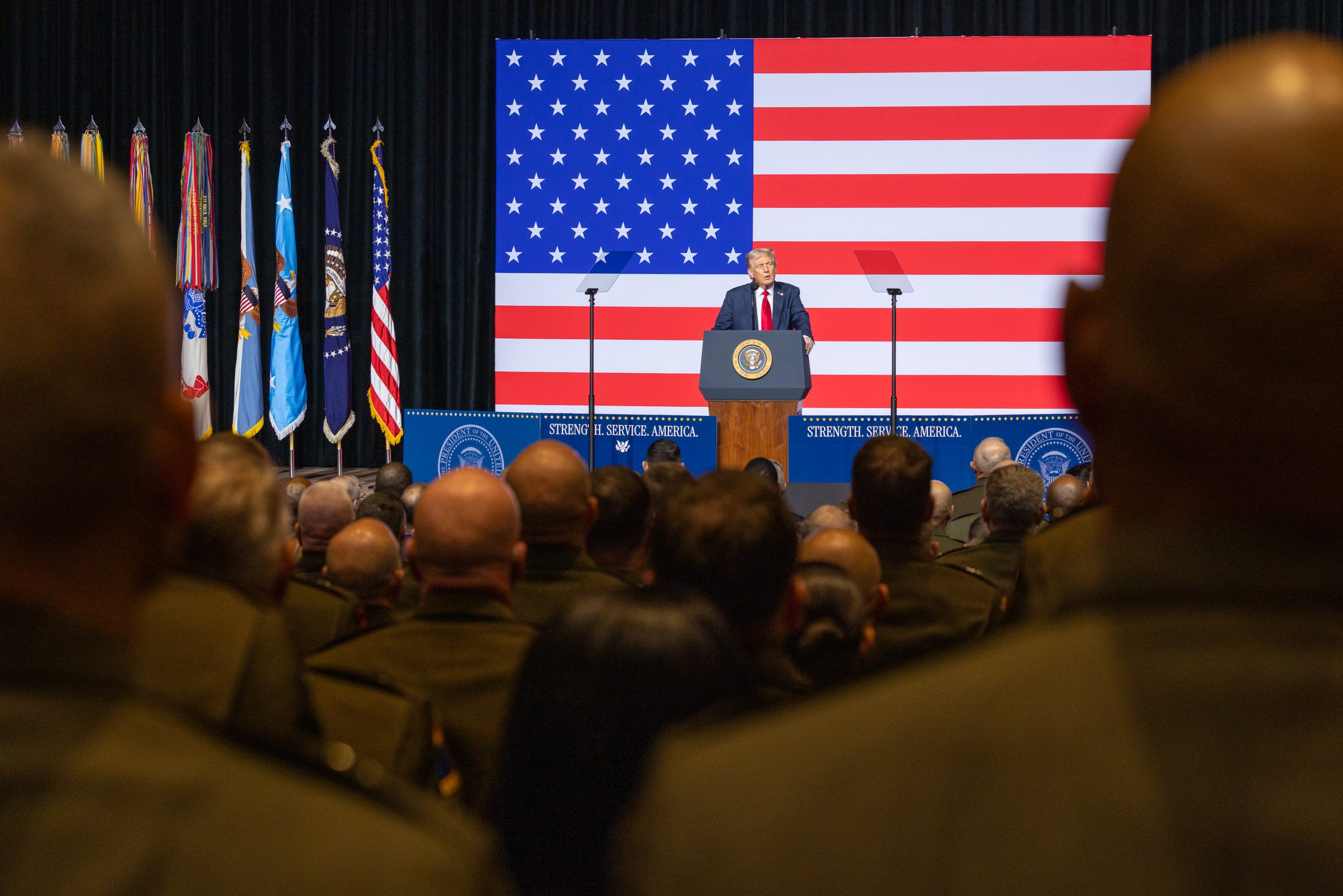 MARINE CORPS BASE QUANTICO, Va.—President Donald Trump and Secretary of Defense Pete Hegseth addressed hundreds of senior military officials here in remarks that touted their efforts to revamp the U.S. military’s culture and opened the door to additional missions to police American cities at home.