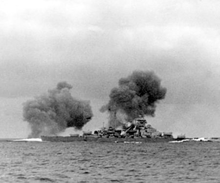 Swordfish torpedo bombers crippled the German battleship. British battleships cruised in to finish the