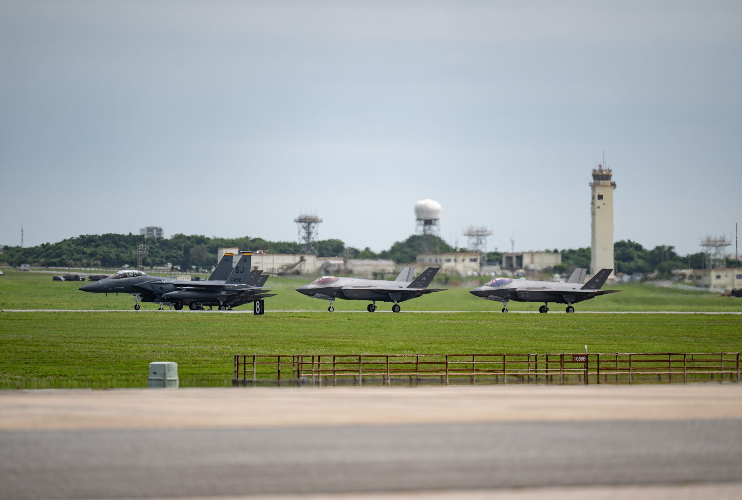 The 18th Wing’s release called the display a “testament to the lethality Kadena AB can leverage to deter adversarial aggression in the Indo-Pacific region.” Chief Master Sgt. Brandon Wolfgang, the 18th Wing command chief master sergeant, said it “sends a message you can’t ignore.”