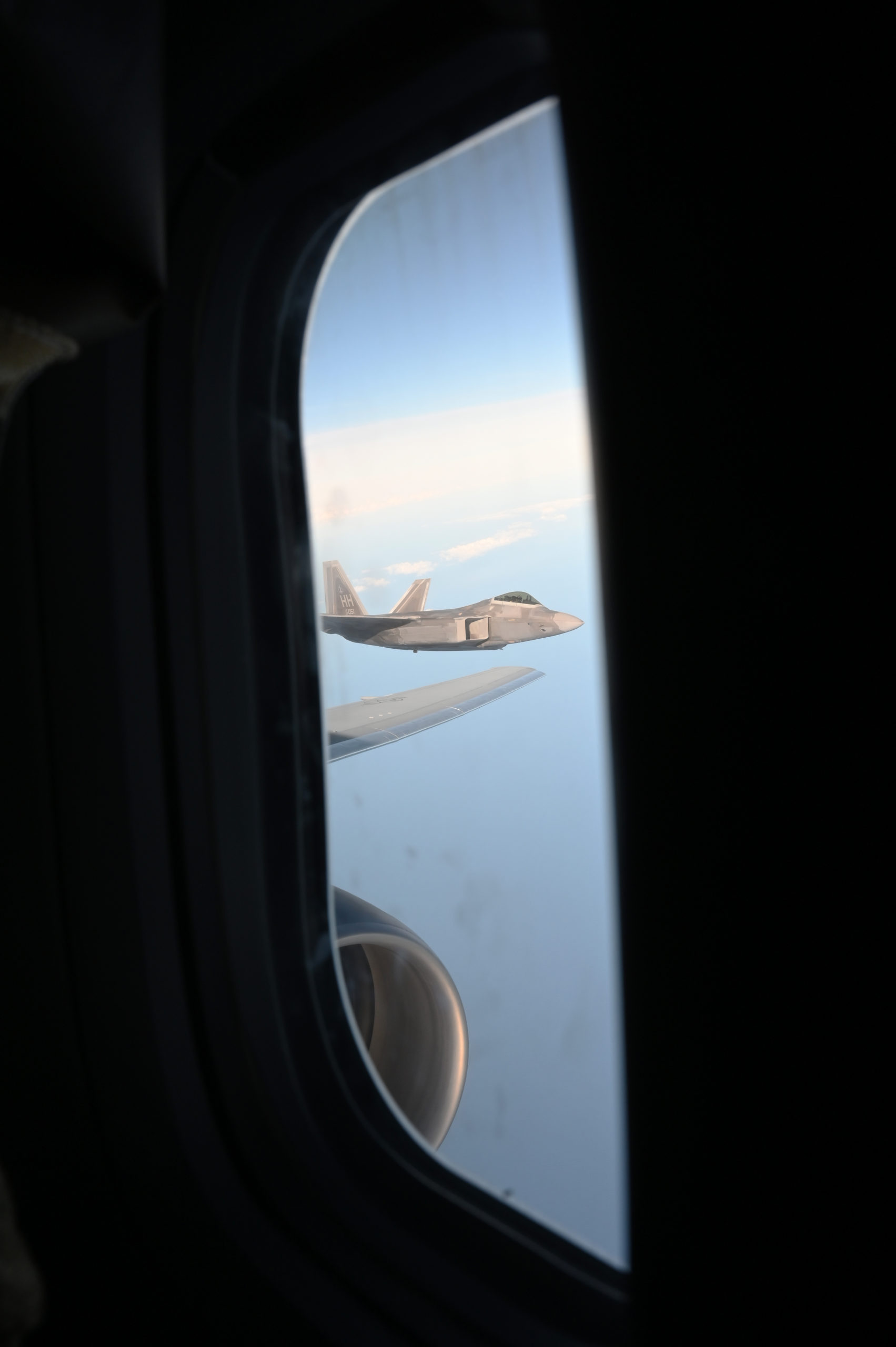 The aircraft took off from a snow-covered base in New England and refueled the F-22 Raptors over sun-splashed light blue waters in the Pacific. A six-minute video captures scenes from the mission.