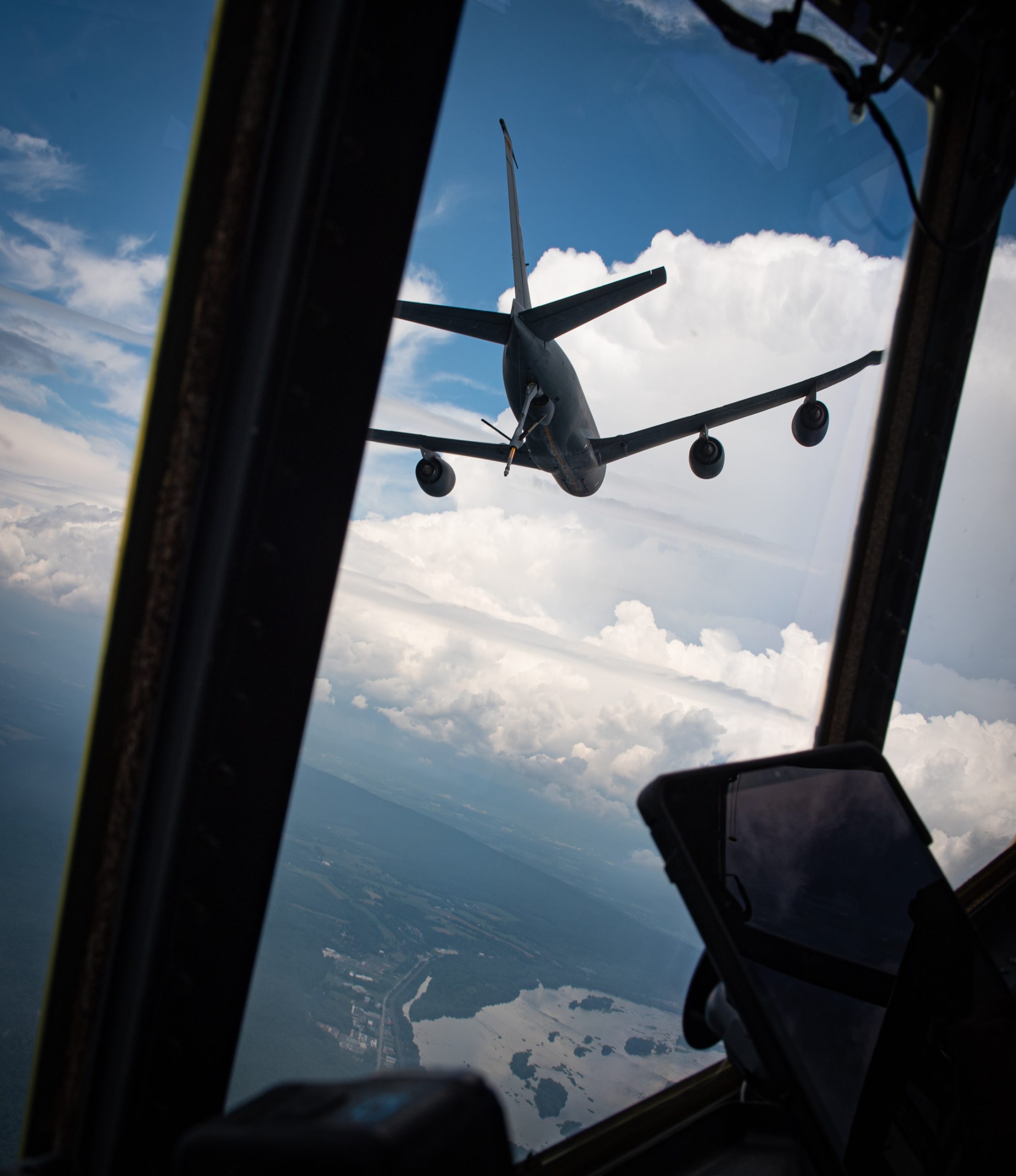 U.S. Air Force Col. Gordon Frankenfield, 193rd Special Operations Group commander, participates in a formation flight with a KC-135R Stratotanker from the 171st Aerial Refueling WIng over Harrisburg, Pennsylvania, June 27, 2023. U.S. Air National Guard photo by Senior Airman Diana Snyder