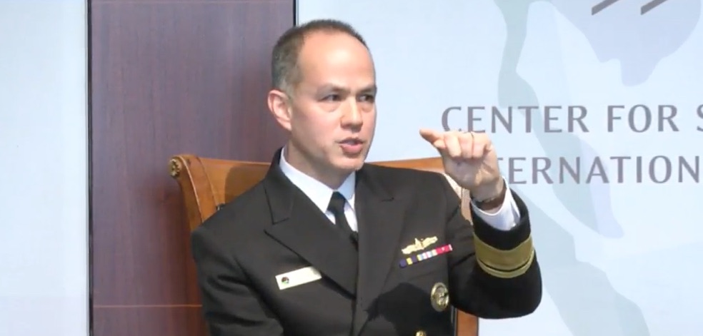 RAdm. Jon Hill, deputy director of the Missile Defense Agency, speaks at the Center for Strategic and International Studies in Washington, D.C., on Dec. 13, 2017. Screenshot photo from CSIS video.