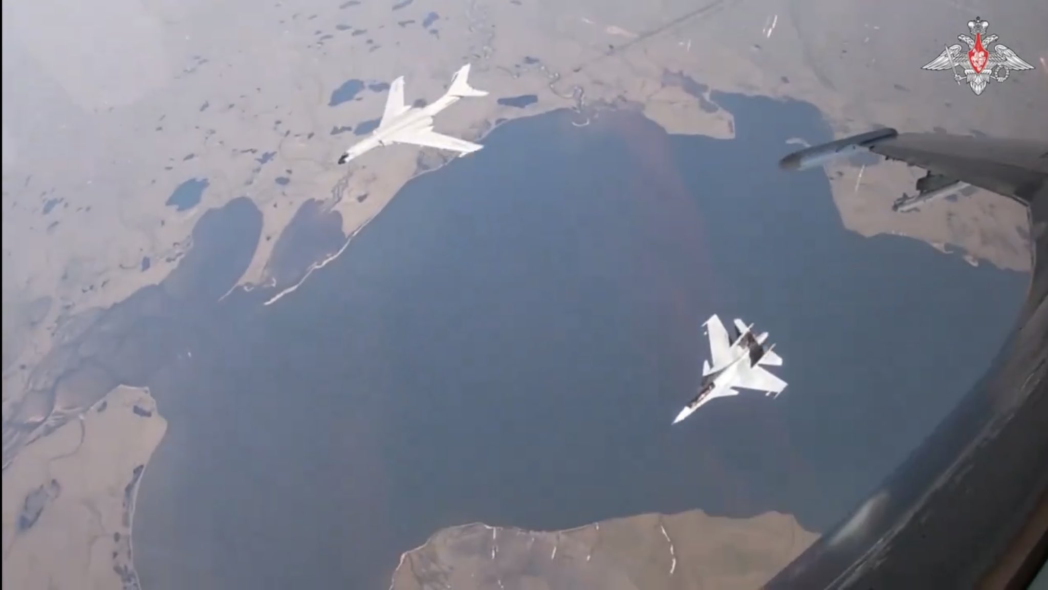 “Tu-95MS strategic bombers of the Russian Aerospace Forces and the Hong-6K strategic bombers of the Chinese People’s Liberation Army Air Force conducted a joint air patrol over the Chukchi Sea, the Bering Sea, and the northern part of the Pacific Ocean,” the Russian Defense Ministry said in a statement. “Russian and Chinese crews practiced cooperation while carrying out an air patrol mission in a new area. The Su-30SM and Su-35S aircraft of the Russian Aerospace Forces provided fighter cover.”
