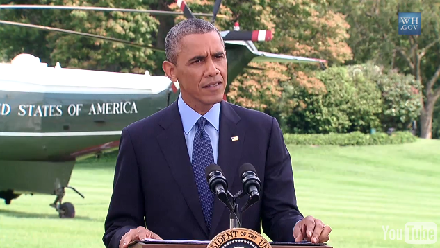 President Barack Obama speaks about the ongoing crisis in Ukraine on July 29, 2014. White House screen shot.