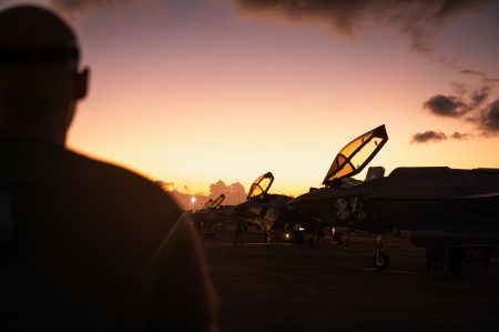 A U.S. Air Force crew chief watches F-35 Lightning II’s park following a large-scale strike against Venezuela military targets in support of Operation Absolute Resolve, in Ceiba, Puerto Rico, Jan. 3, 2026. U.S. Air Force Photo