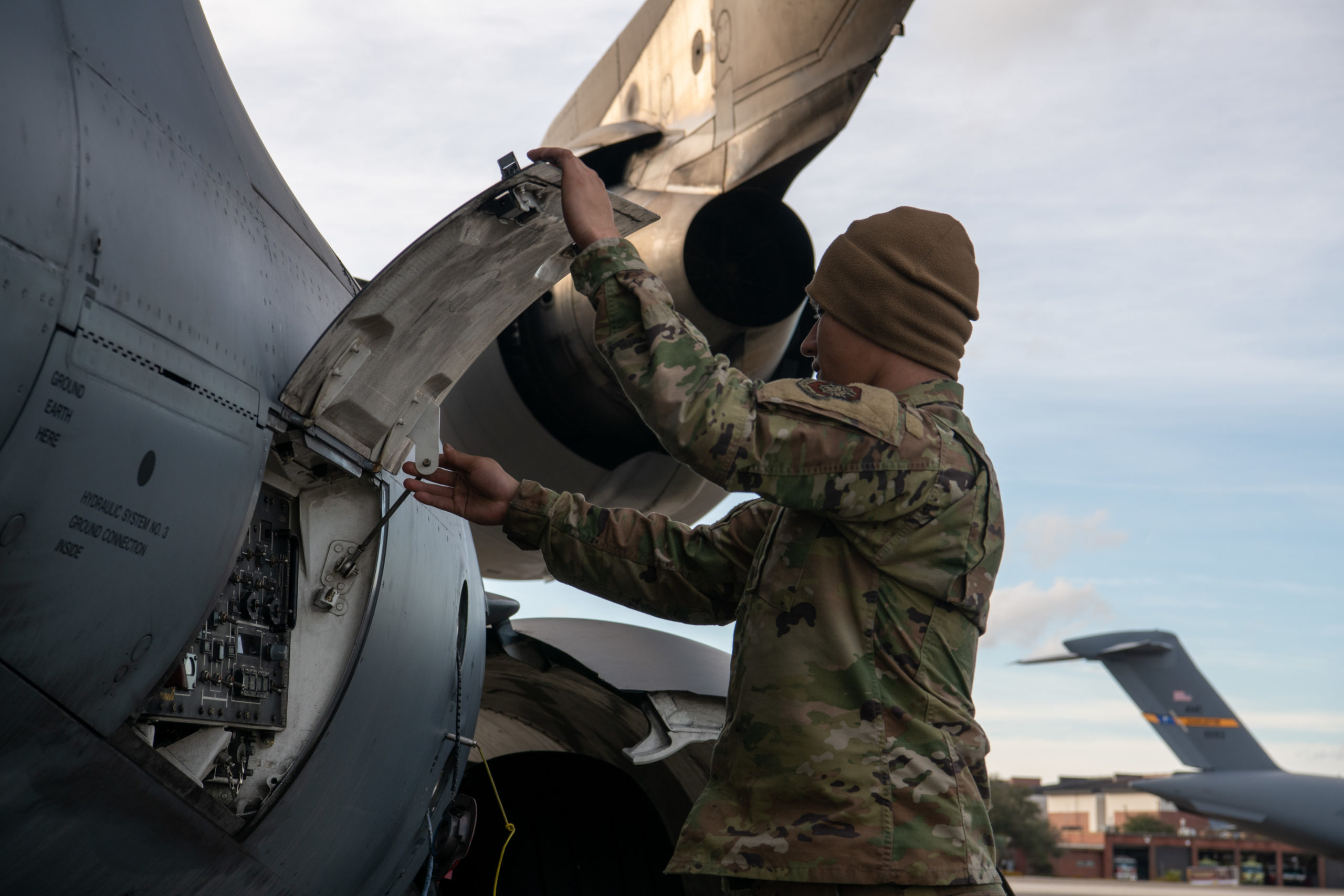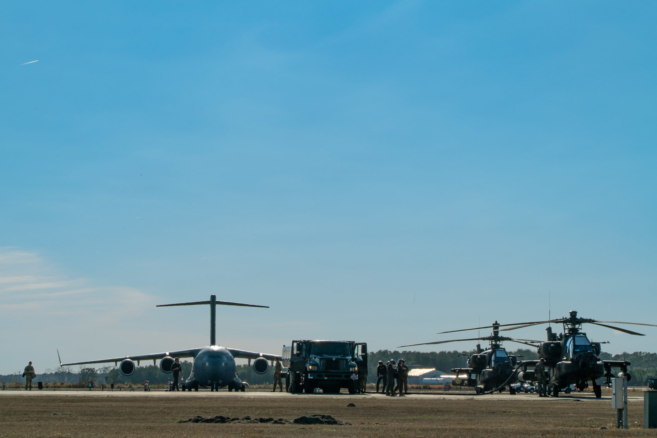 At Beaufort, the C-17s performed an “integrated combat turn” and refueled U.S. Army AH-64 Apache helicopters. And at Hunter, Airmen practiced maneuvering cargo under fire, operating outside of their primary duties.