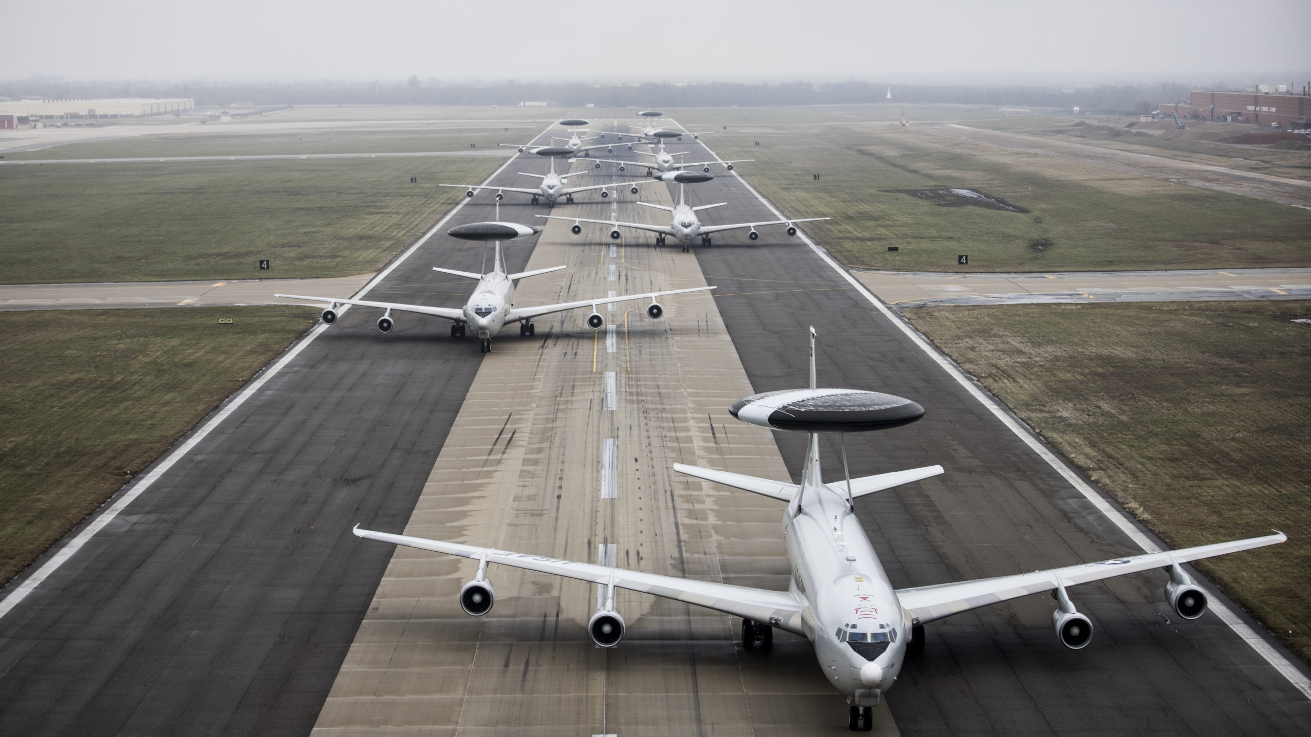 With the aircraft’s retirement looming, the 552nd Air Control Wing took the exercise as opportunity to stage an elephant walk—aircraft taxiing in a close formation in a show of airpower—on one of the base’s runways.