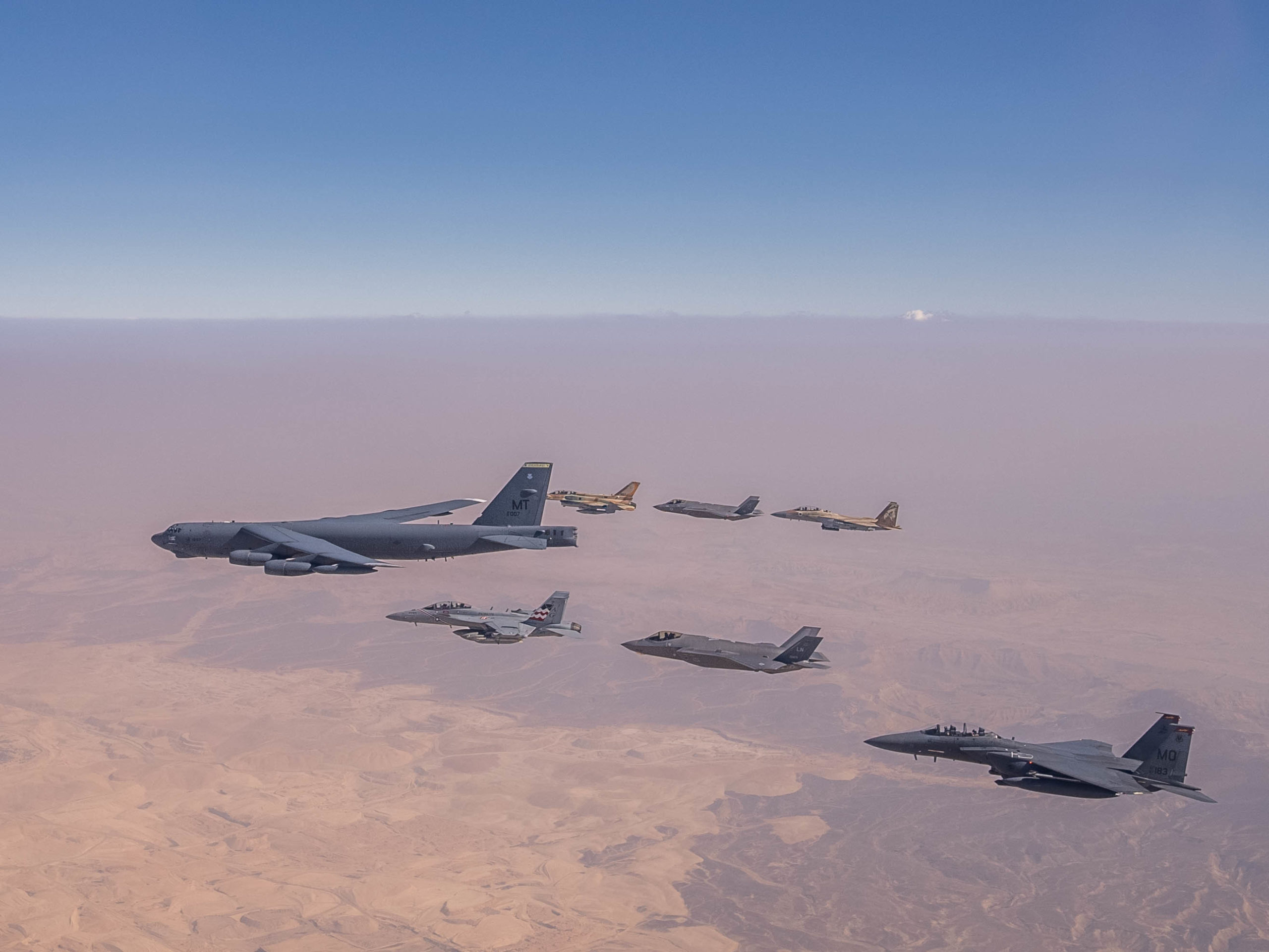 Four American F-35 Lightning IIs joined six Israeli F-35s, in a rare appearance of Air Force F-35s in the region—the U.S. sometimes sends fifth-generation F-22 Raptors to CENTCOM to quickly respond to contingencies.