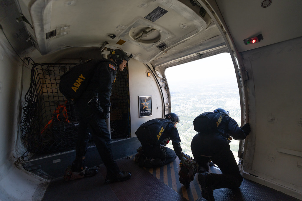 - U.S. Army UH-60 Blackhawks, Coast Guard MH-65 Dolphin helicopters, and CV-22 Osprey tiltrotors