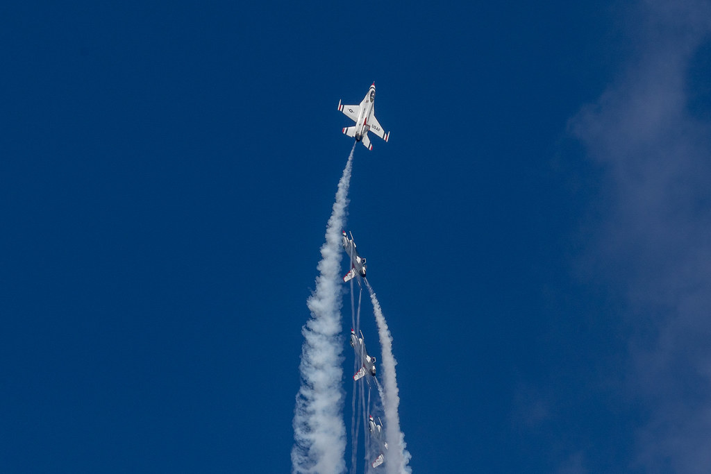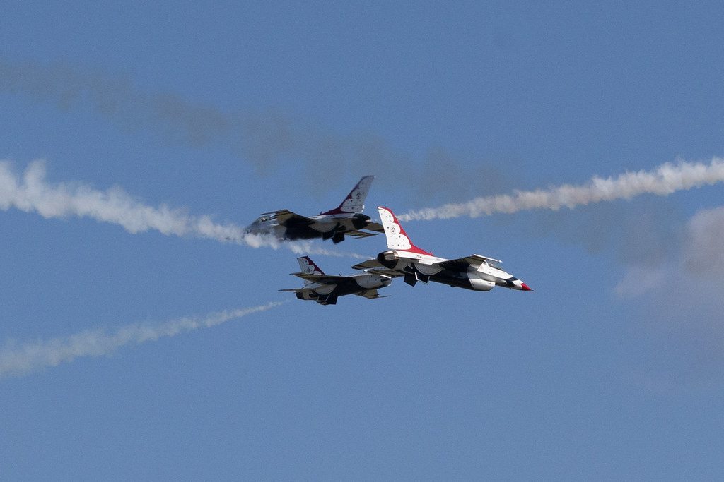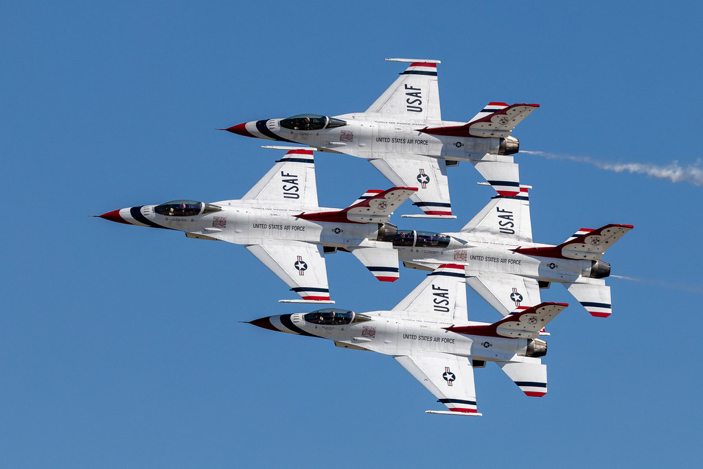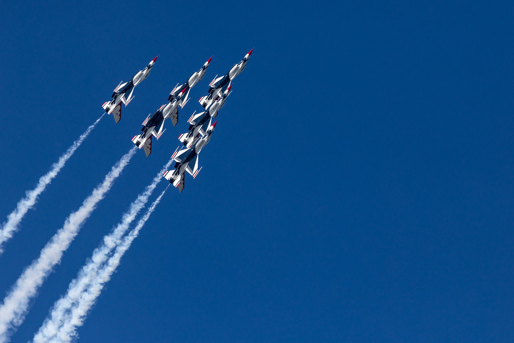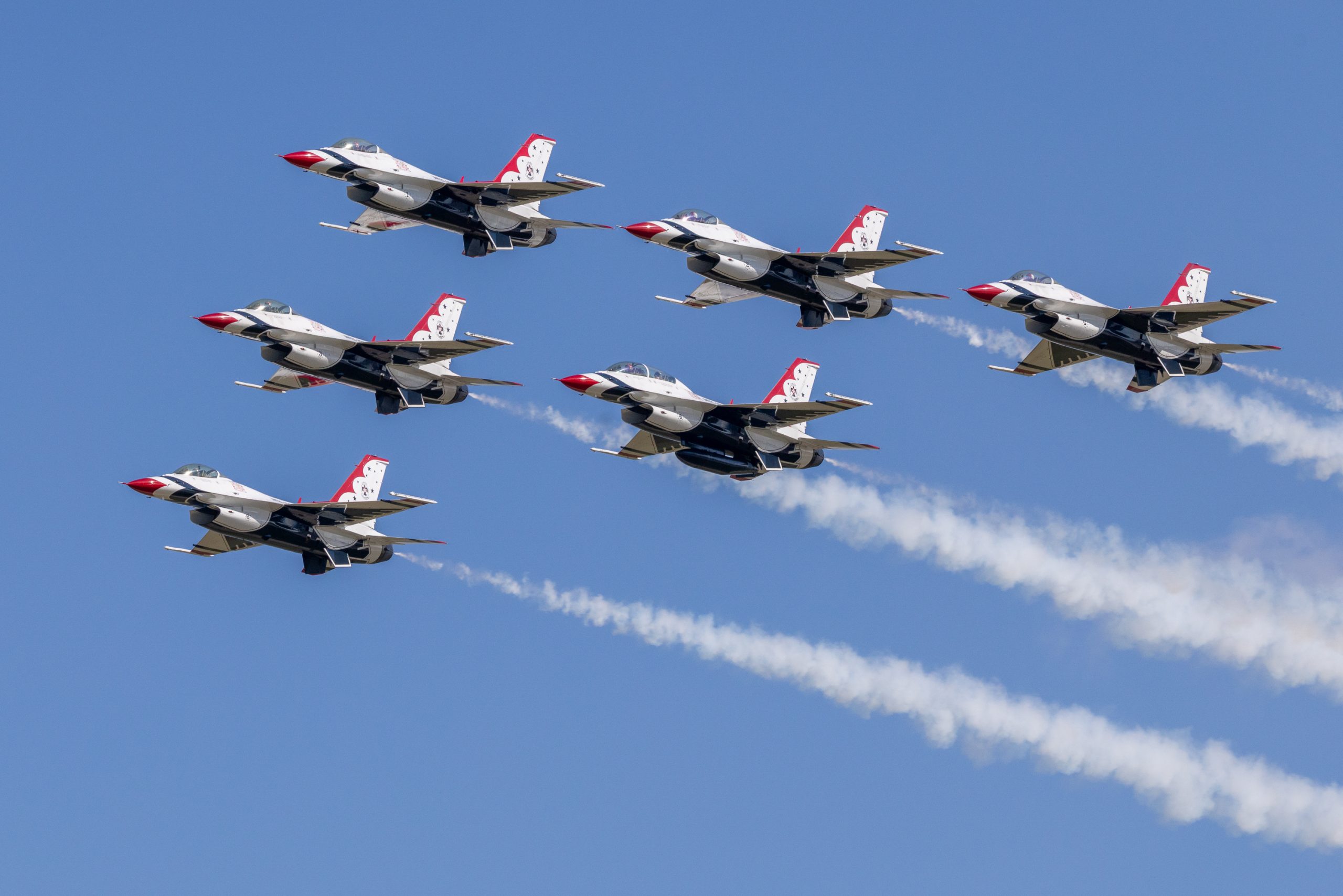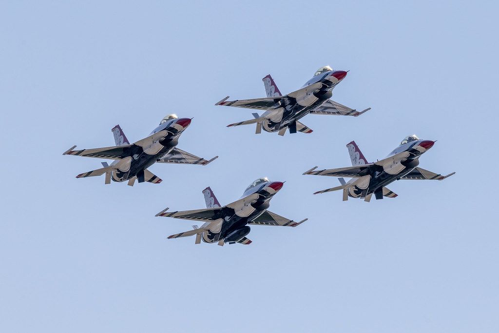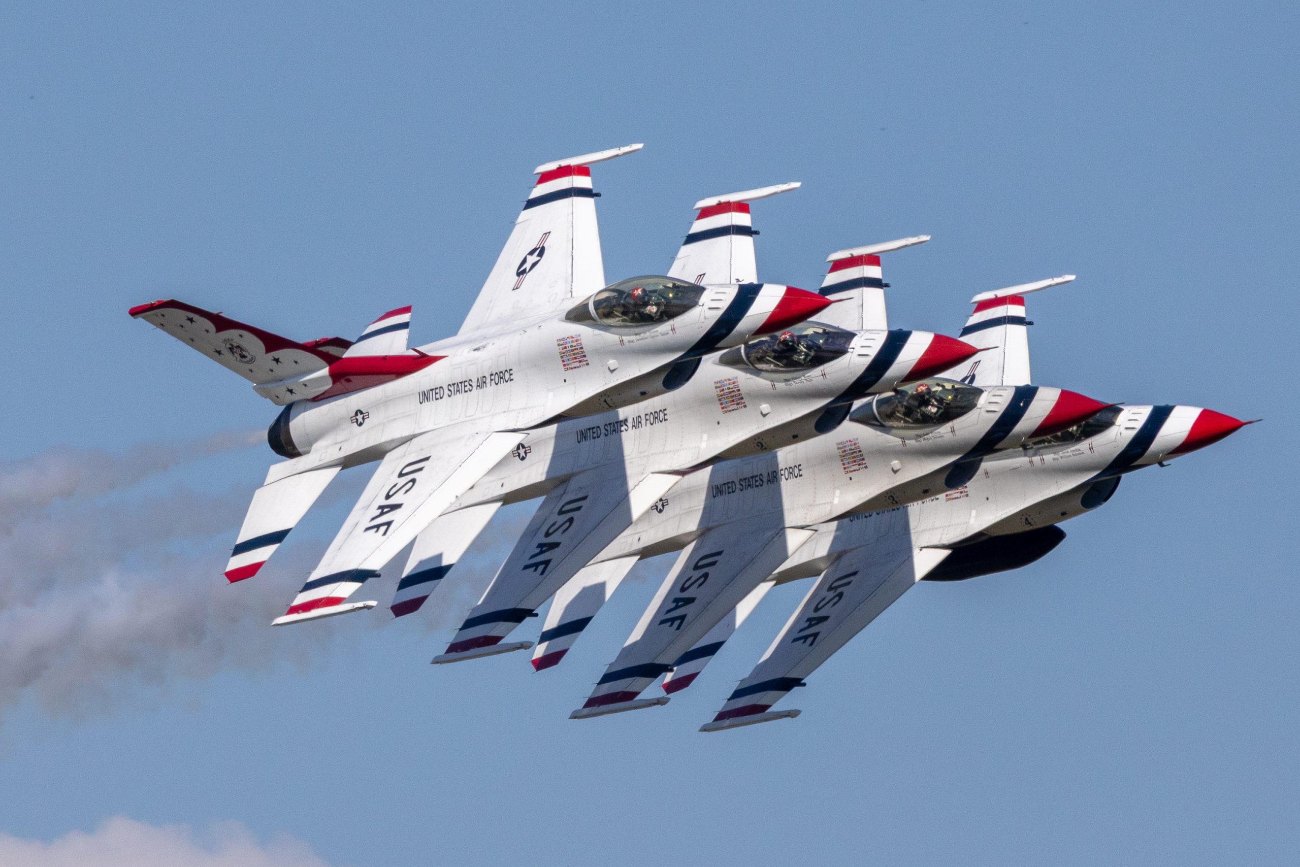 Next on the list was the challenge of restricted airspace so close to three airports and the nation’s capital. Planners had to establish a five-mile ring of protected airspace around Andrews so the Air Force Thunderbirds’ F-16 demonstration team and all the other performing aircraft could perform their aerial maneuvers. That required extensive coordination with the Federal Aviation Administration and the air traffic controllers at Ronald Reagan Washington National Airport, Baltimore/Washington International Thurgood Marshall Airport, and Dulles International Airport.