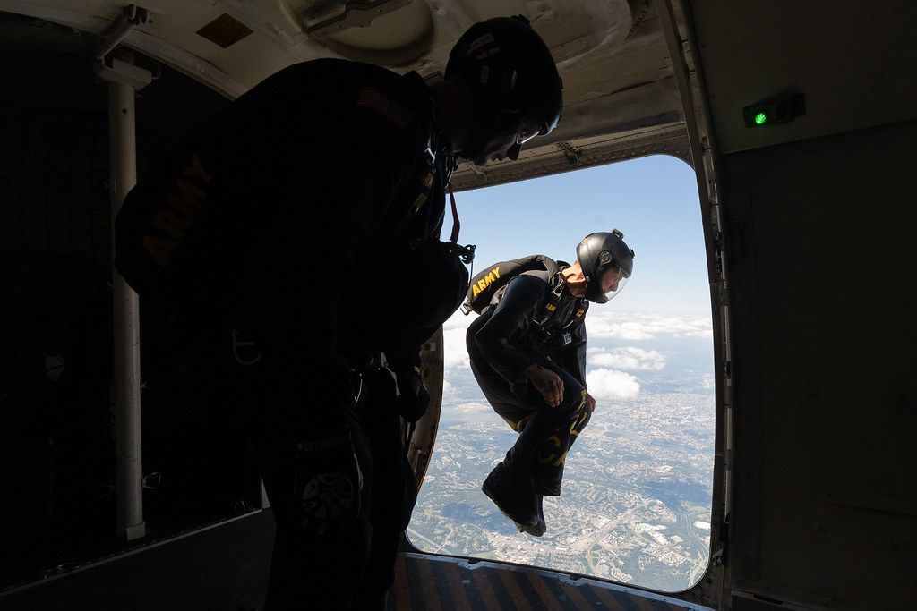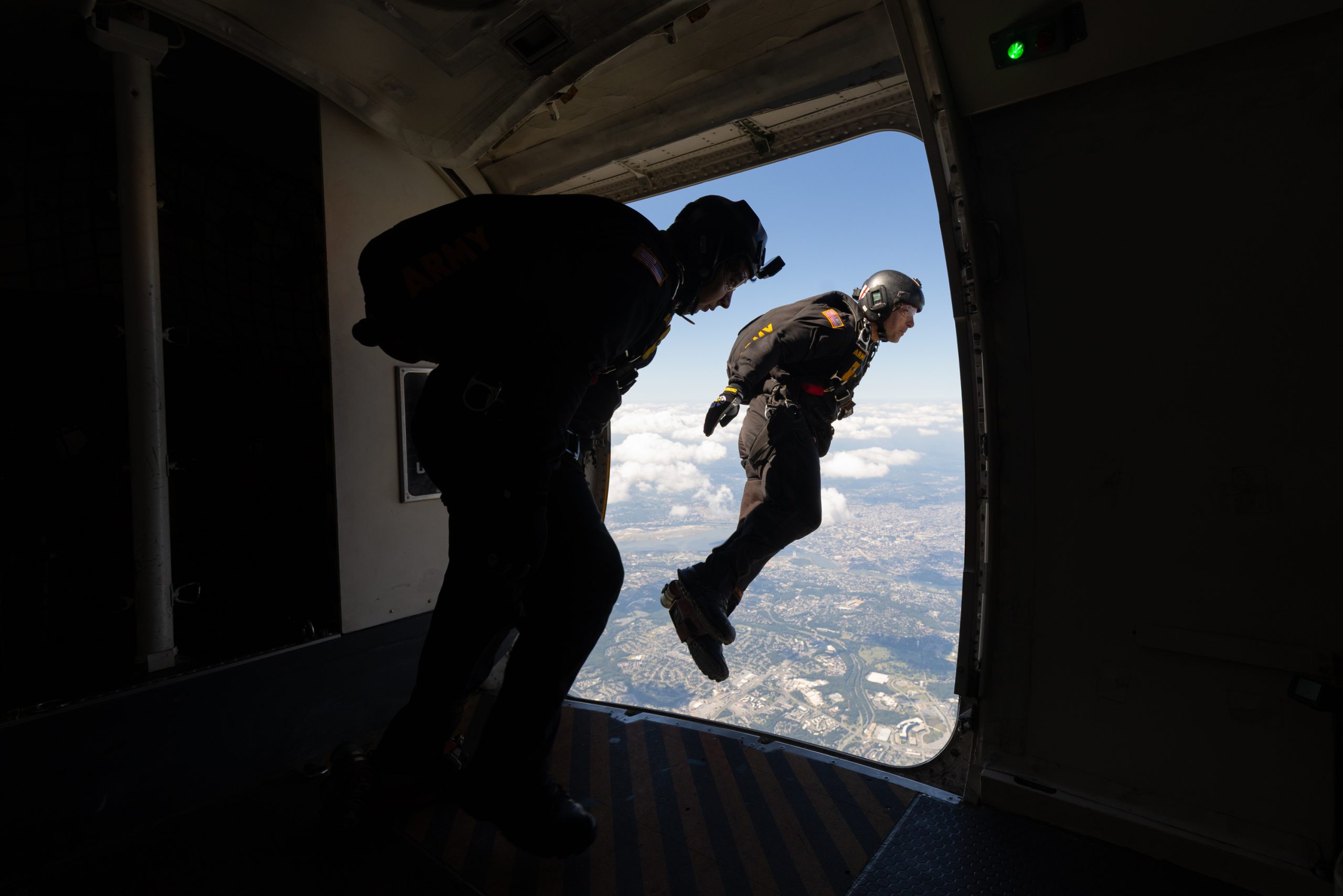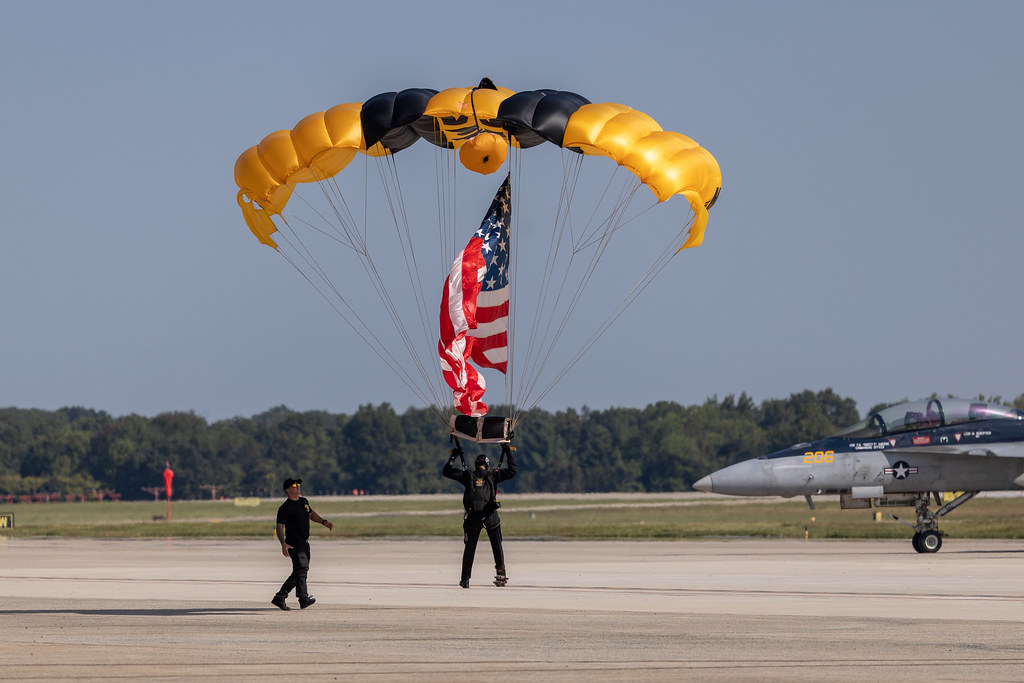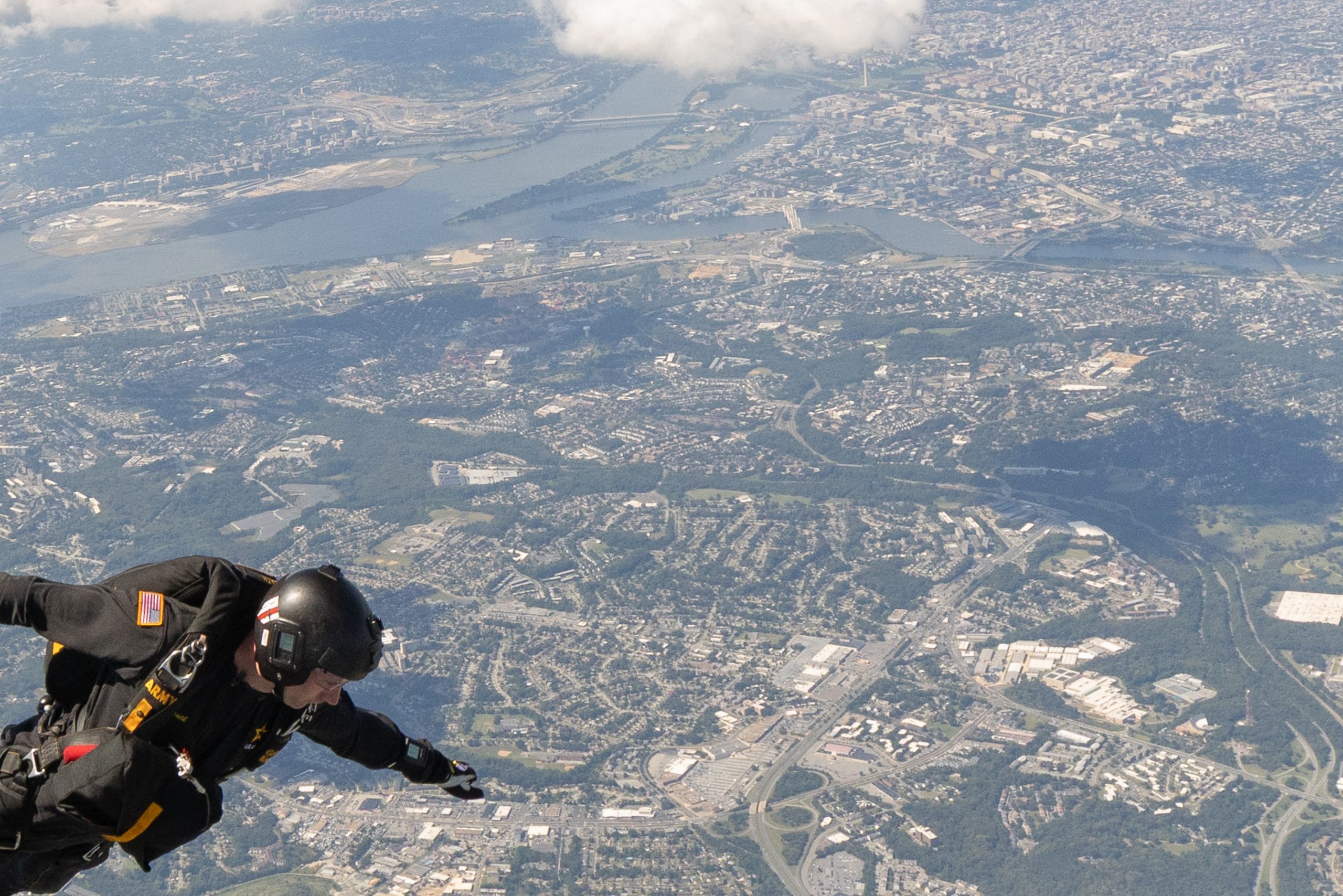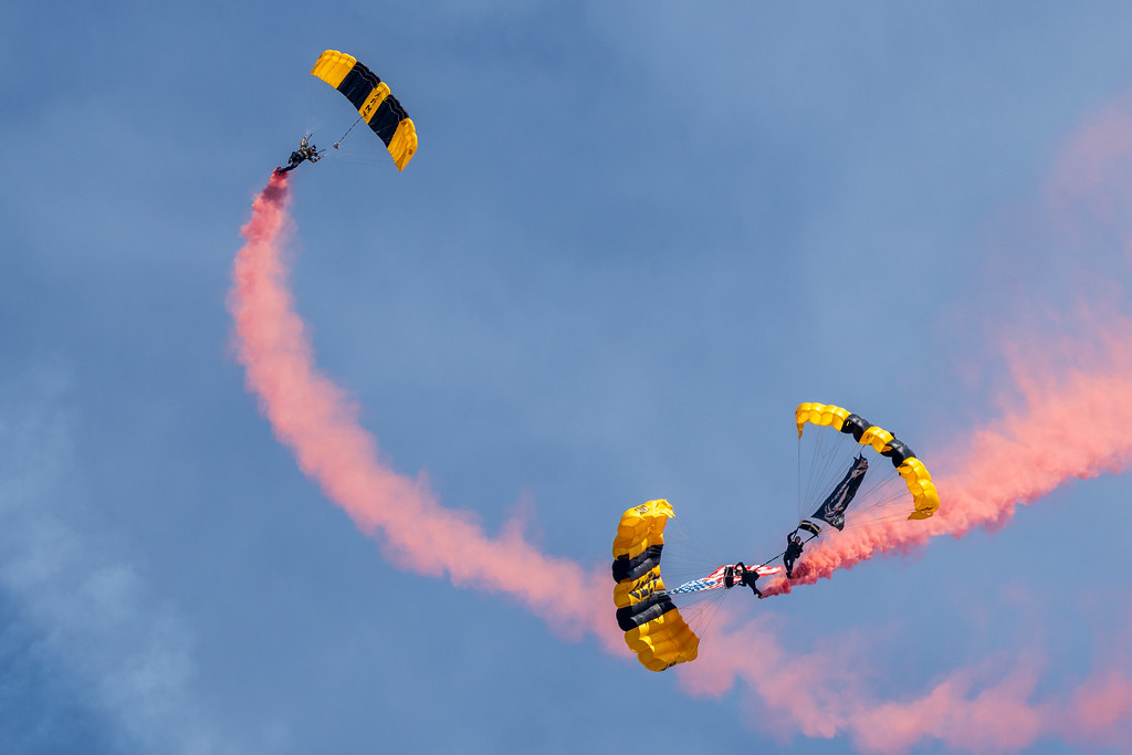 The U.S. Army’s Parachute Team, nicknamed the Golden Knights, also participated:
