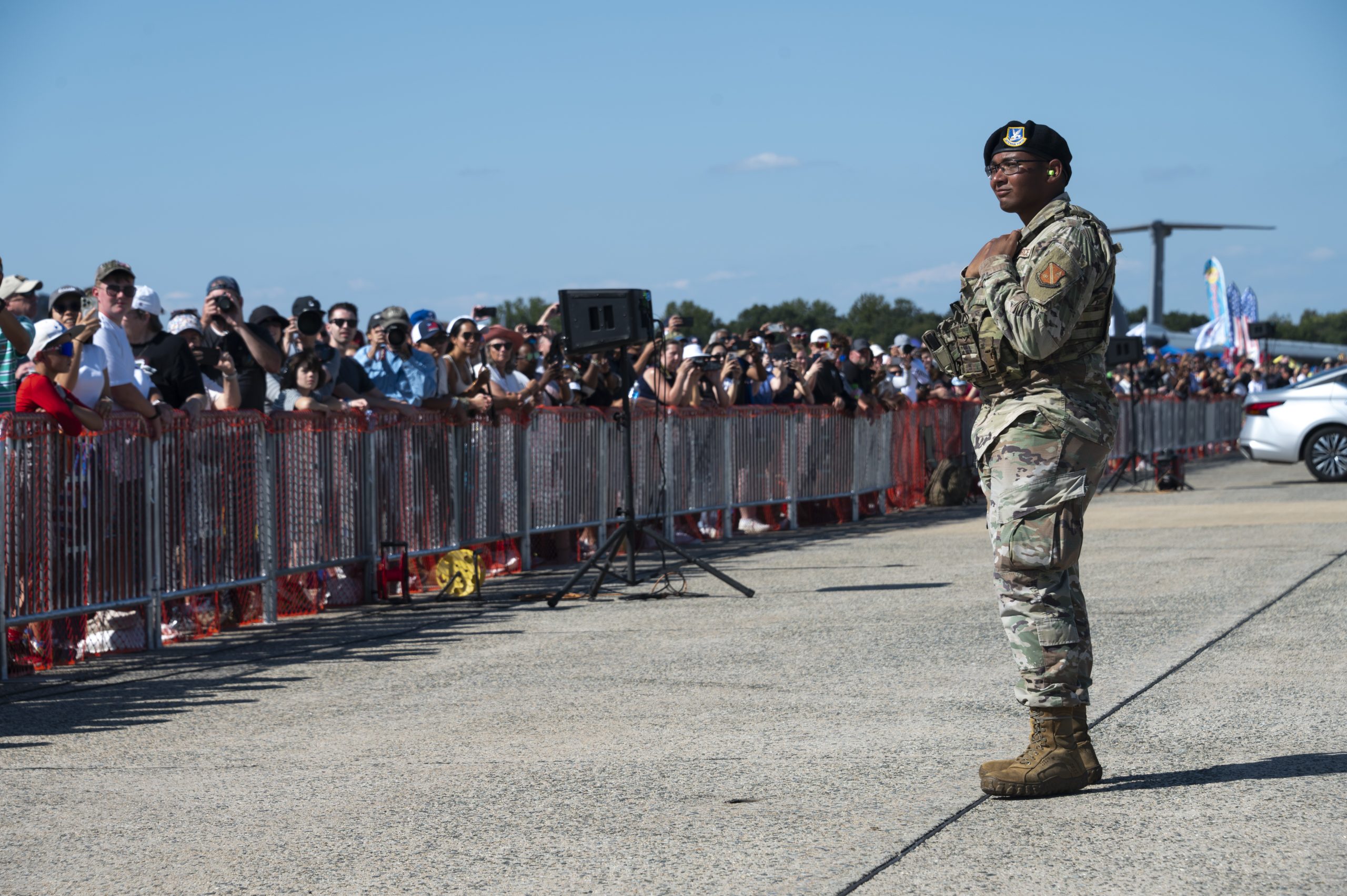 Traffic management, magnetometers to screen each visitor, parking, 160 buses to transport guests from the screening area to the airfield—all presented challenges. Airmen armed with holstered M18 service pistols roamed the flightline all day, despite the warm September sun.