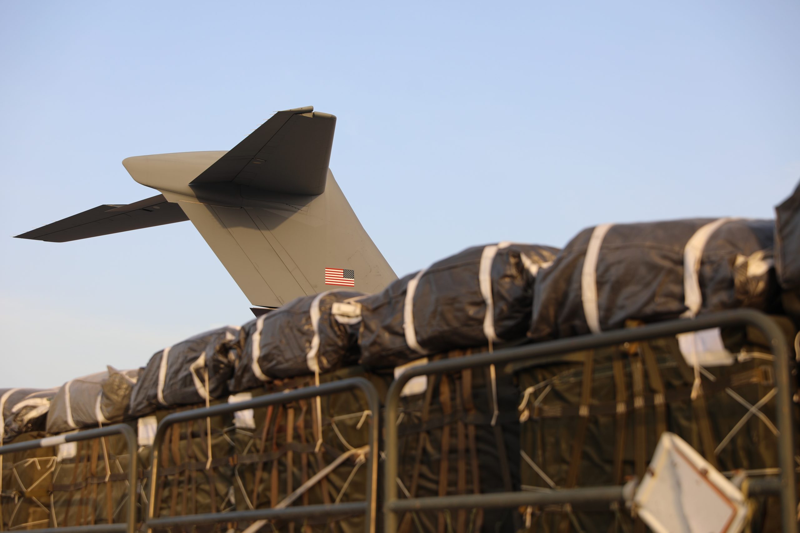 Protecting U.S. troops sometimes comes ahead of more humanitarian supplies. The day before, he said, missiles for Coyote anti-drone systems arrived in the theater, ahead of roughly 1,000 parachutes expected the next day for humanitarian airdrop missions.