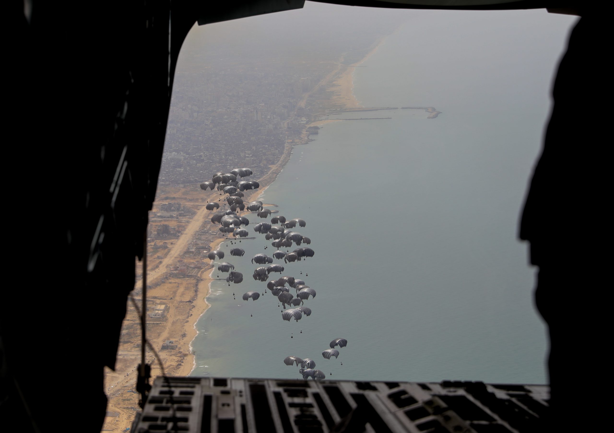 The U.S. began airdrops a day after President Joe Biden announced the effort on March 1, and in recent weeks, the number of drops has grown exponentially. One month on, C-130s, C-17s, and Airbus A400s from several countries whir over Gaza, with the British the latest to join in.